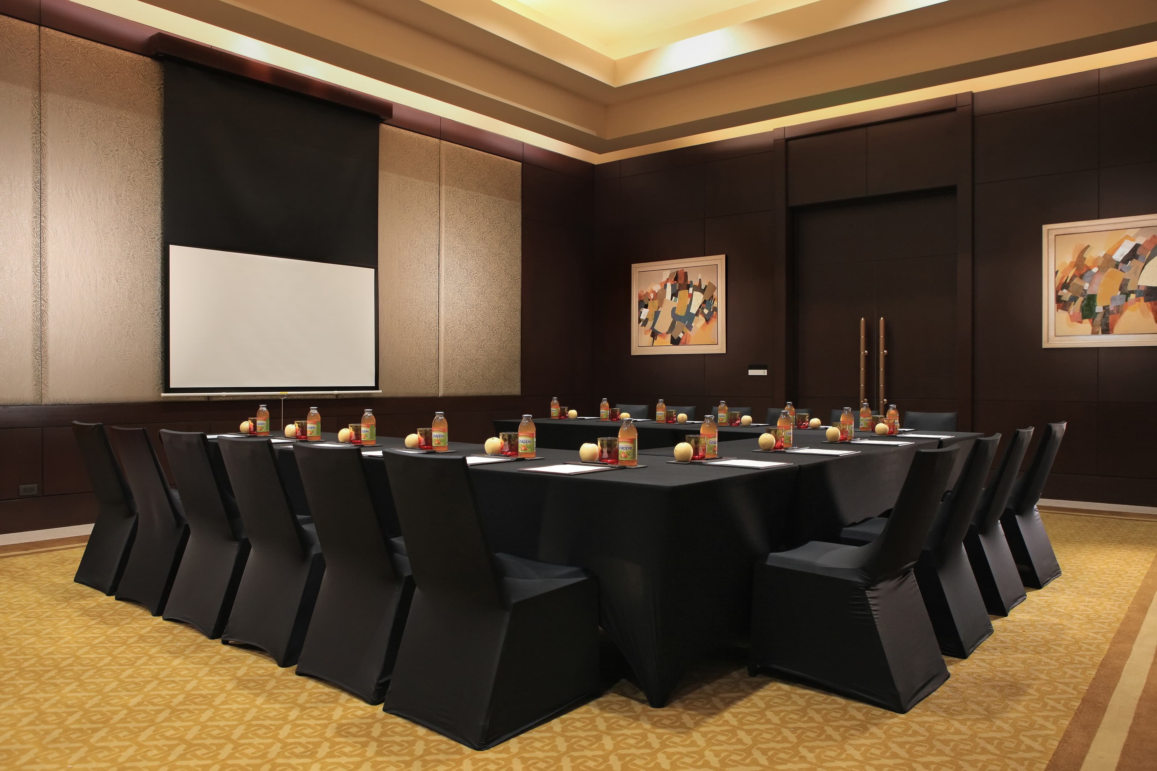 Inspired by the artistic legacy of José Joya, one of the Philippines’ National Artists, the room’s interiors feature subtle abstract elements and warm tones that evoke creativity and inspiration. The ambiance is enhanced by natural daylight streaming through large windows, giving the room an open and refreshing atmosphere that promotes productivity and collaboration.